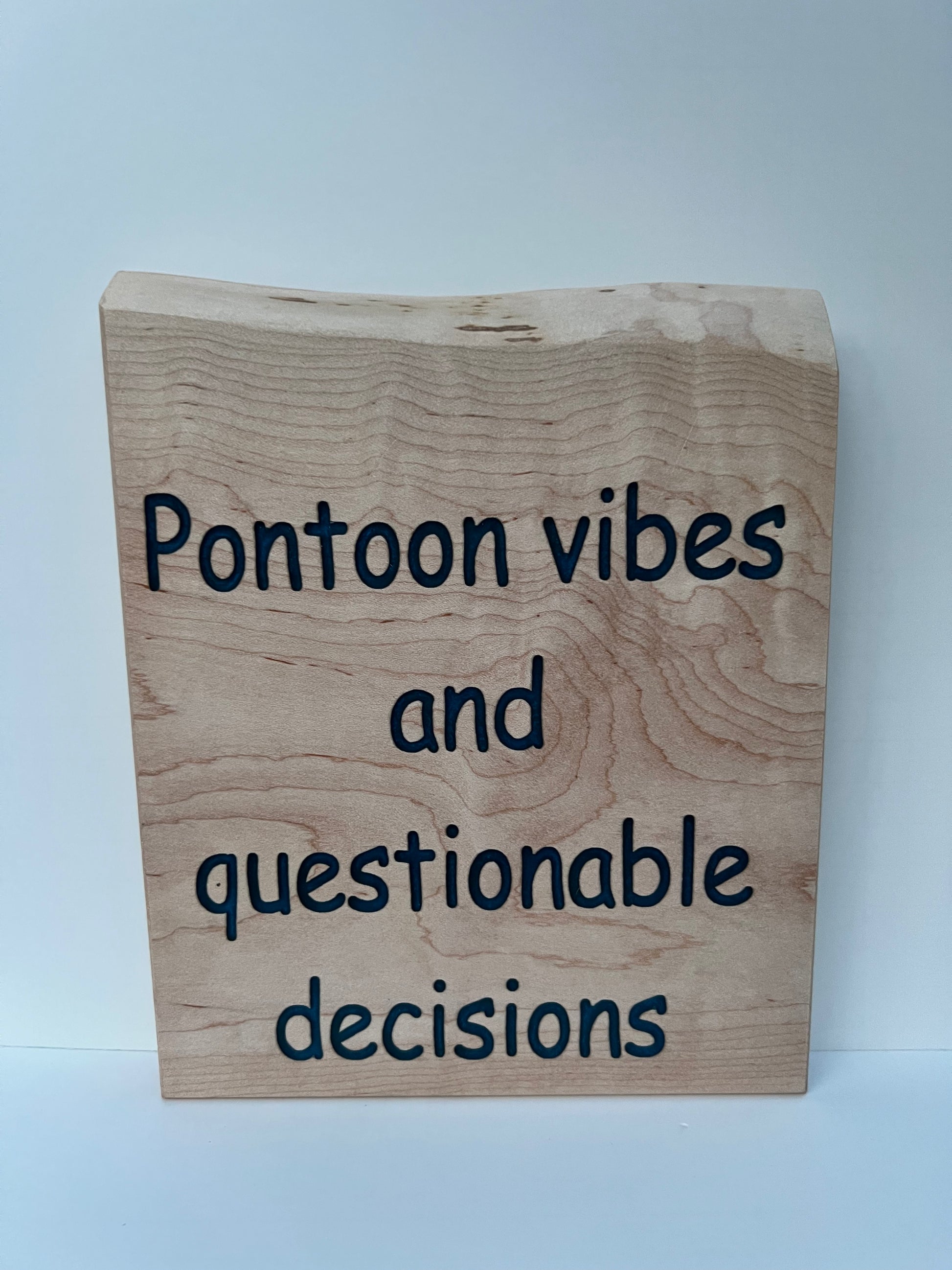 Choose a clean wood finish or opt for a vibrant, color-filled inlay that adds a bold pop without compromising the natural beauty. We offer mixed wood options, live edges, and perfectly selected slabs to match your vision. Thinner signs are ideal for wall hanging, while thicker pieces—2 to 3 inches—can stand on their own on a bookcase, mantel, or shelf.