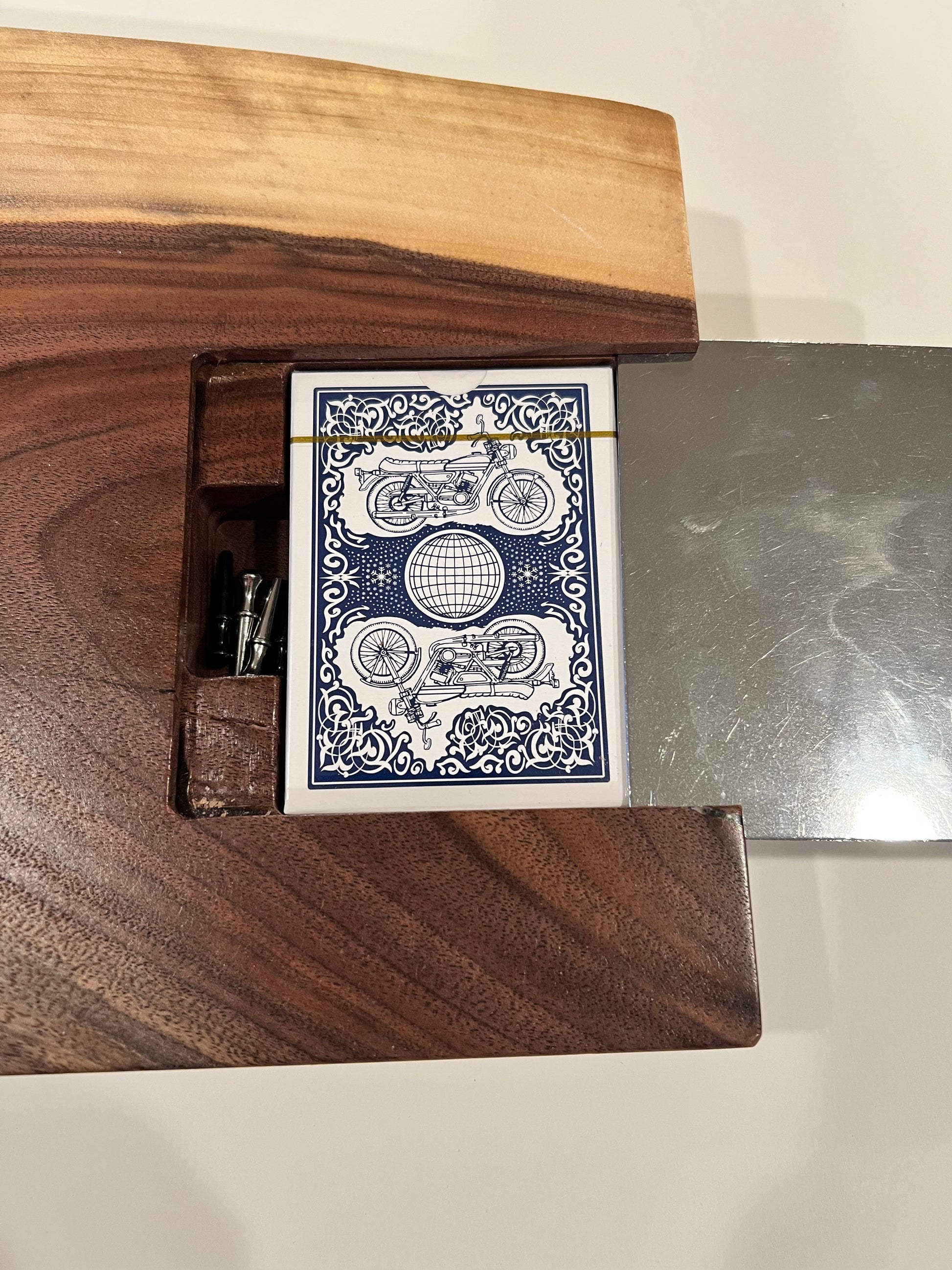 We create 3-D carvings, inlays, designs, words, logos—anything you want engraved or embedded into a cribbage board (or any board, for that matter). Every detail is customized to make your board a meaningful keepsake as well as a functional game piece.