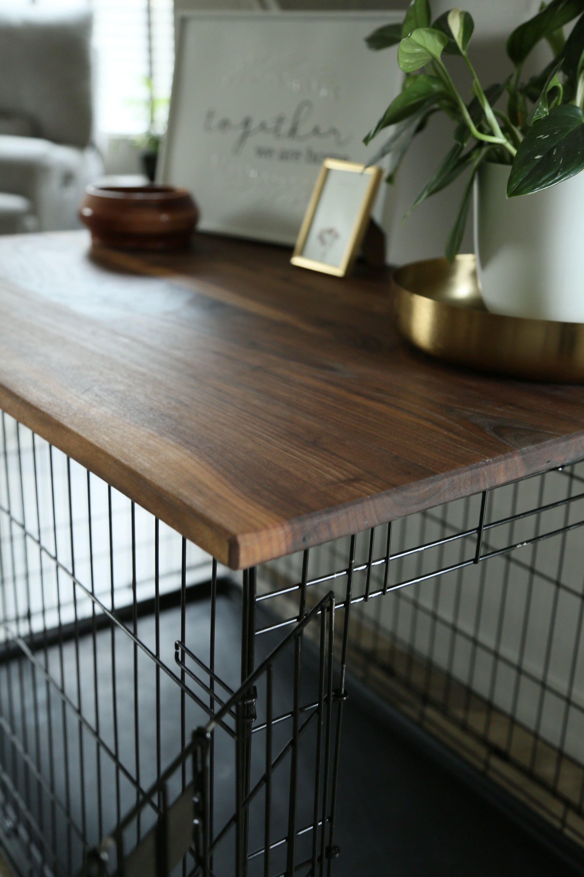 Turn your dog’s kennel into a stylish, functional piece of furniture with our custom-made dog kennel topper. Designed to fit your exact kennel size, this topper instantly transforms a basic crate into a beautiful tabletop surface you can decorate and enjoy.